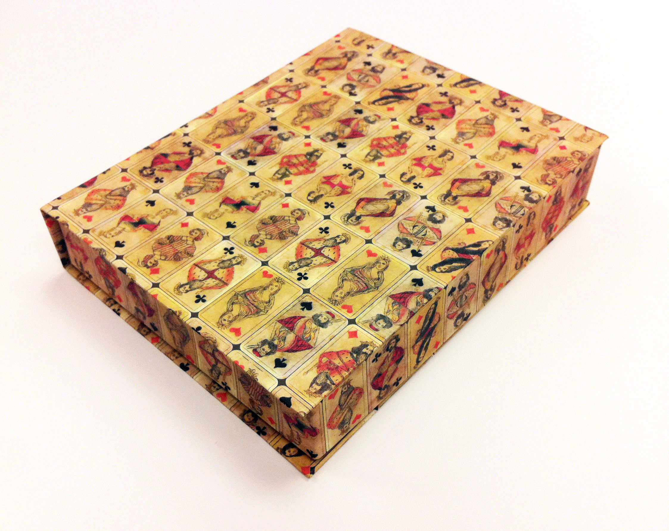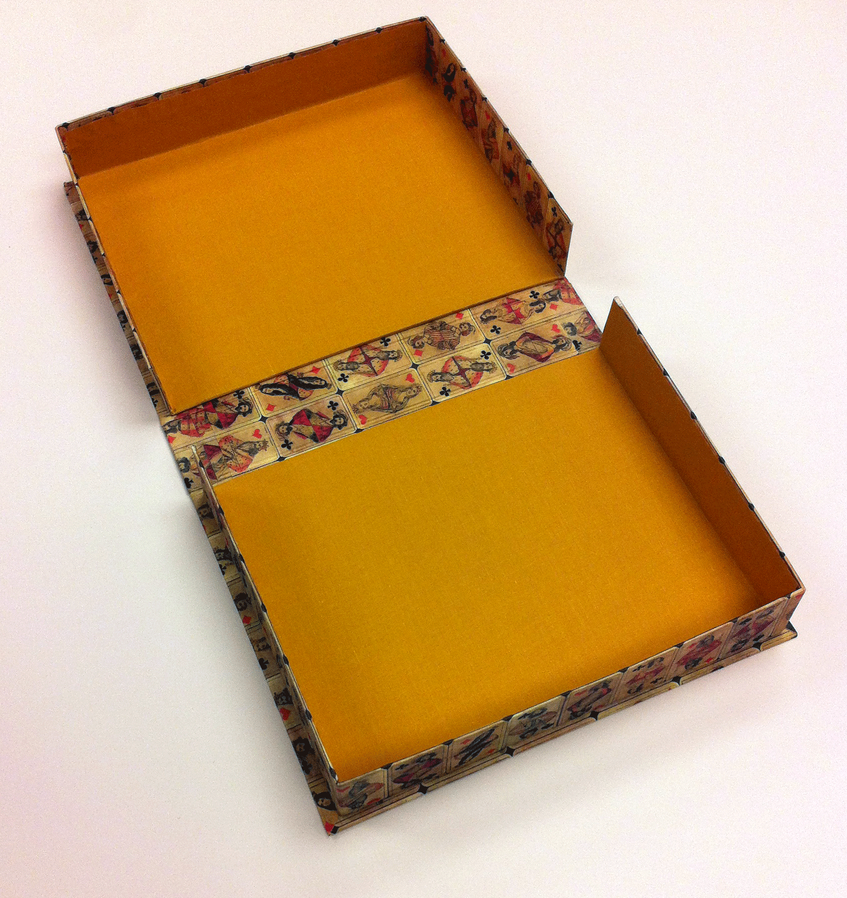 I wanted to make him a handmade box instead of “wrapping” his gift. I successfully made my first clamshell box which I have named the “Carlito”. The handmade paper and book cloth I had purchased at Hollander’s.